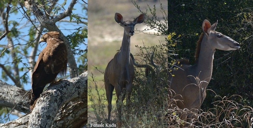 Three young Hippos were along the river, where there was also an African Pied Wagtail, Red-billed Oxpeckers and an Emerald-spotted Wood Dove, Little Egret, Marsh Sandpiper, Wood Sandpiper and an African Fish Eagle.