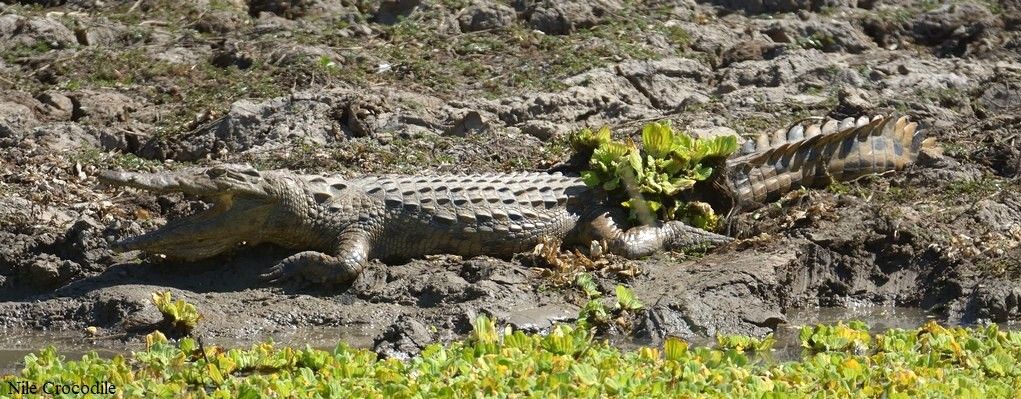 At least 5 Crocodiles were basking on the bank of the river and nearby were seven Yellow-billed Storks, before it was time (after a sundowner) for the spotlight to appear.