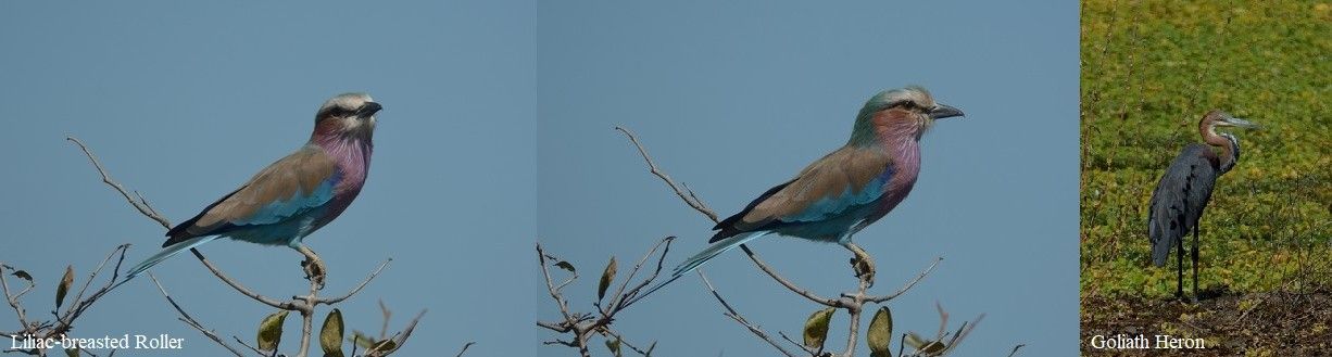A Mourning Dove was heard, according to Julius but unfortunately no sighting. A Crawshay’s Zebra was next, Village Weavers and 3 Crowned Lapwing, before the ever-colourful Lilac-breasted Roller perched on a dead stump.