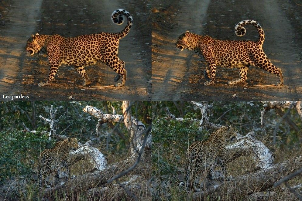 Finally, we came across the equivalent of a bush supermarket car park and again the subject was a Leopard this time a male. At one time there were two spotlights on it and subsequent images showed that the Leopard was squinting all of the time as it made its way away from the attention. It became apparent that this area of the park was accessible to a lot more tour company vehicles and this was not good for the animals guests had come to see, some at any cost!
