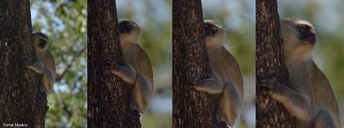 A Vervet Monkey mother had a baby suckling in a tree and a Southern Red-billed Hornbill was nearby, again in the trees.