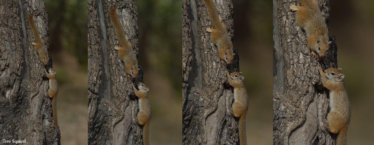 A Slender Mongoose was found up a tree, where it was investigating a hole in the tree, which it partially entered before reversing and moving on. A Tree Squirrel was found next, which also had a look in the hole; previously frequented by the Slender Mongoose and then a White-fronted Bee-eater was found perched in a tree.