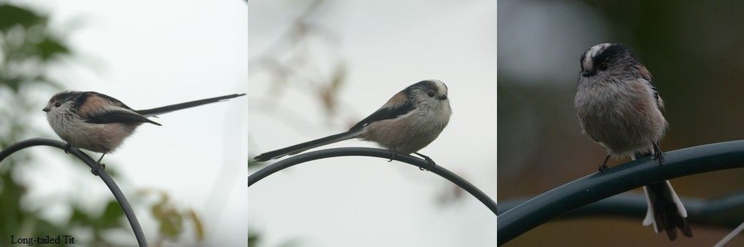 2 Long-tailed Tit, 2 Blue Tit and a Great Tit once again taking seeds from the Sunflower heads were good to have in the garden (28th).