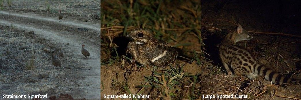 A Water Thick-knee was captured in the spotlight as were Great Spotted Genet and Four-toed Sengi.
