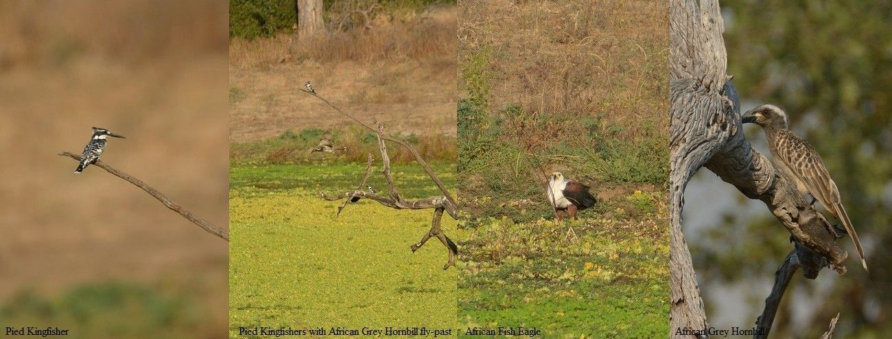 At least 40 Great White Pelicans were sighted beside an area of water and they were not alone! Both Marabou and Yellow-billed Storks were here too as was a Three-banded Plover and a Wood Sandpiper, whilst an adult African Fish Eagle perched nearby in a tree; another great collection of birds in the wonderful South Luangwa National Park.