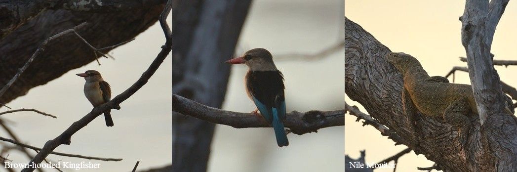 Back near the river and a Marsh Sandpiper was seen, whilst 4 Grey Herons were perched in the same tree. Somewhat odd to see this familiar bird to me in Africa!