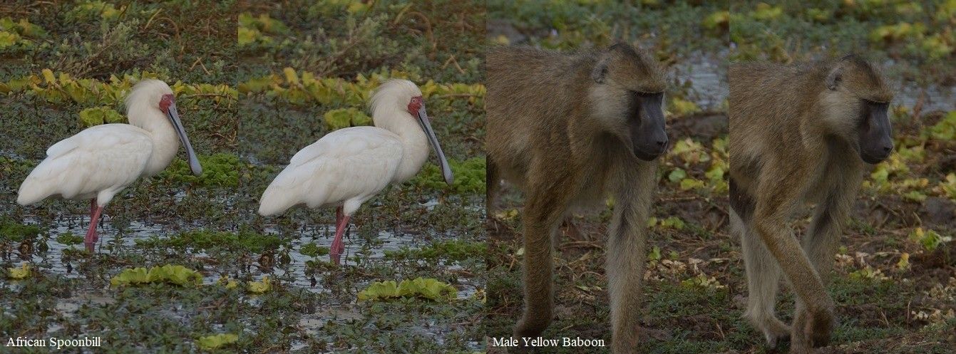 A male Yellow Baboon began the evening safari (with the Austrian also on board) and was busily eating something before we found a Green Wood Hoopoe in a tree investigating the end of a dead branch and once again an African Fish Eagle was photographed.