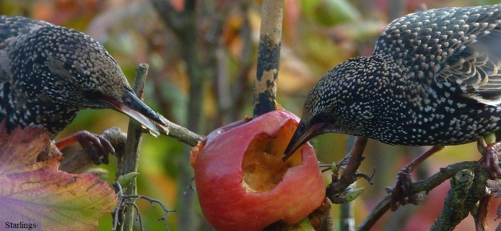Later in October, Starlings were also enjoying the fruits both on the cane and on the ground and an increase in Blackbird numbers also saw Blackbirds feeding on the apples and pears placed on the ground. Blackbirds were also enjoying the berry laden Cotoneaster on the side of the shed.