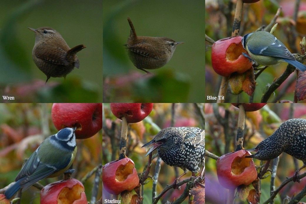 For the third year running; Apples and Pears were ‘impaled’ on a bamboo cane in the garden. The original thought behind this was to attract overwintering Blackcaps, which they did, but they also attracted, somewhat surprisingly Blue Tit/s! No one (at least locally) I know had seen this Blue Tit feeding behaviour and I still have not heard anything since; but here, once again was a Blue Tit feeding on the apples (18th) put in place in the garden.