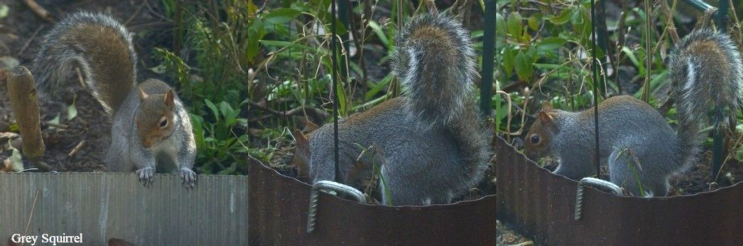 The Grey Squirrel was again present (23rd) in the garden; once again digging and presumably burying items. 2 Dunnock, 2 Blue Tit, 2 Blackbird, Robin and 3 House Sparrows were also present.